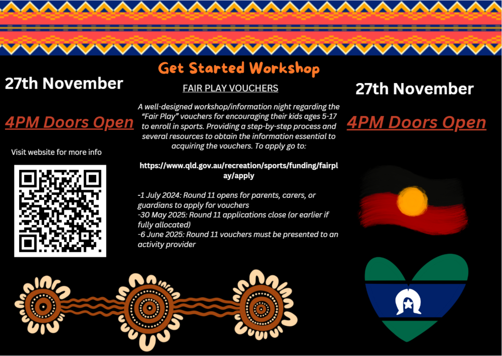Come on down and have a yarn about the “Fair Play” Vouchers that are available for Jarjums 5-17 to get involved with sport. Join our Move Our Bodies (MOB) Program that encourage Jarjums and adults to get active and have fun!